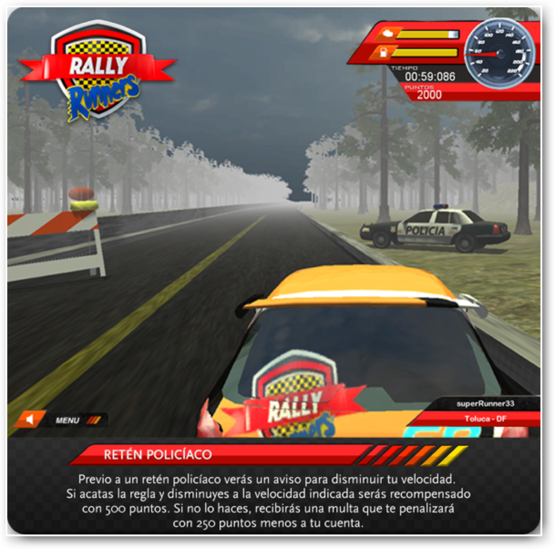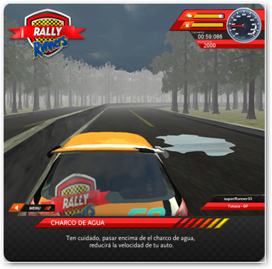 Videojuego en linea que realizamos para una promoción, desarrollando códigos alfanuméricos de seguridad impresos en el producto, plataforma digital para registro de usuarios, bases de datos, back end, arquitectura, diseño gráfico, modelos 3D, pistas, diseño de la mecánica del juego, sistemas de monitoreo, estadísticas, integración con redes sociales, etc.