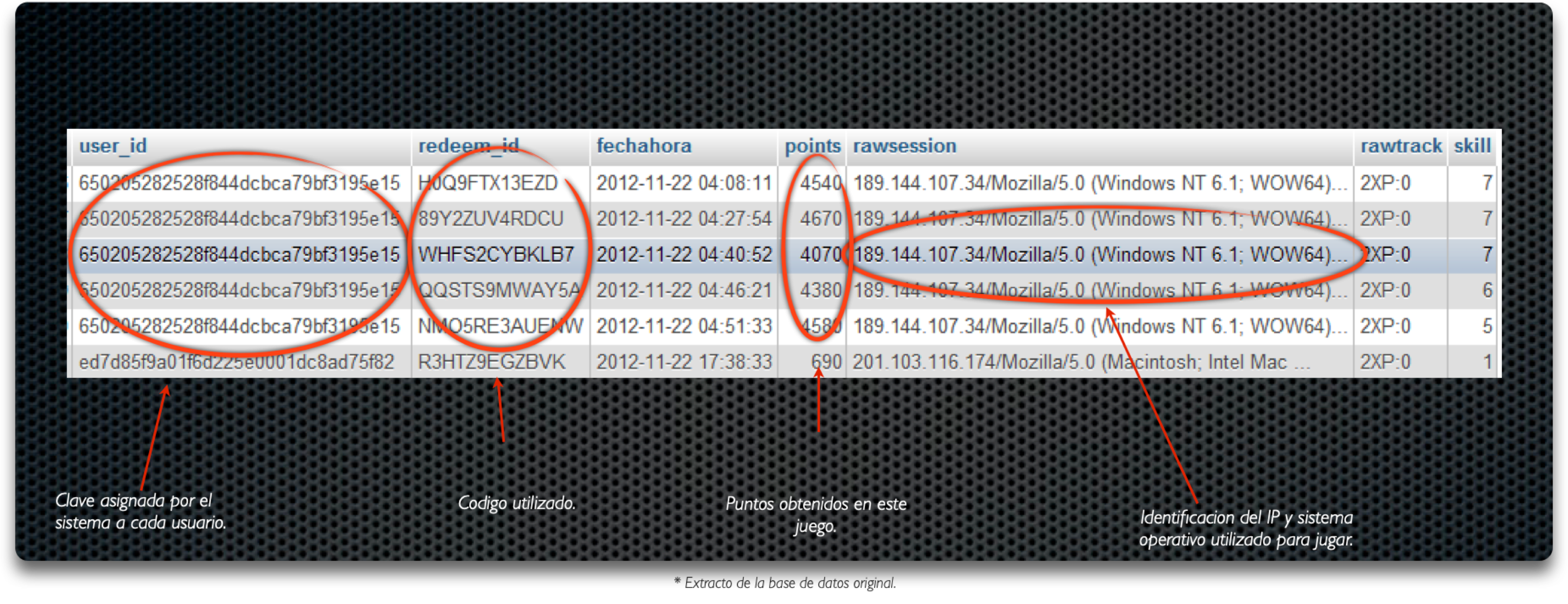 Desarrollamos un sistema que monitorea el comportamiento de los usuarios del juego, registra la actividad de cada código y de cada usuario, de esta manera es posible obtener cualquier información ligada a la promoción durante toda la activación.