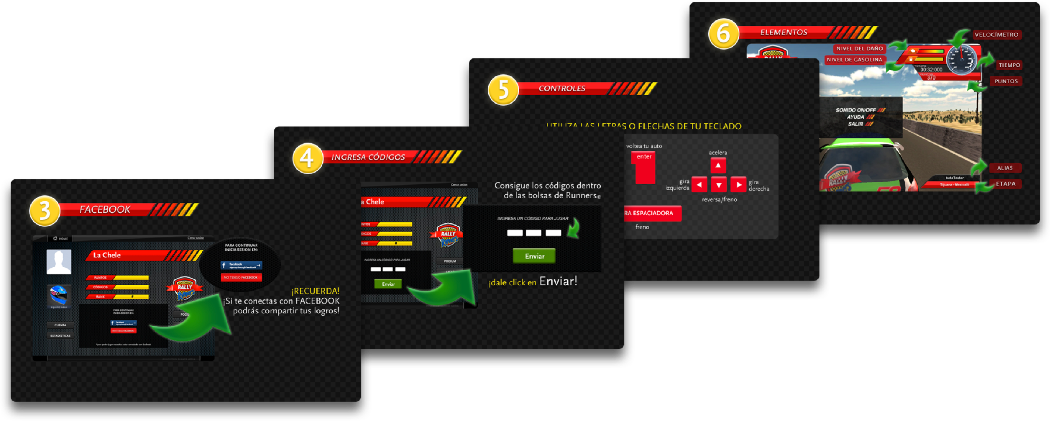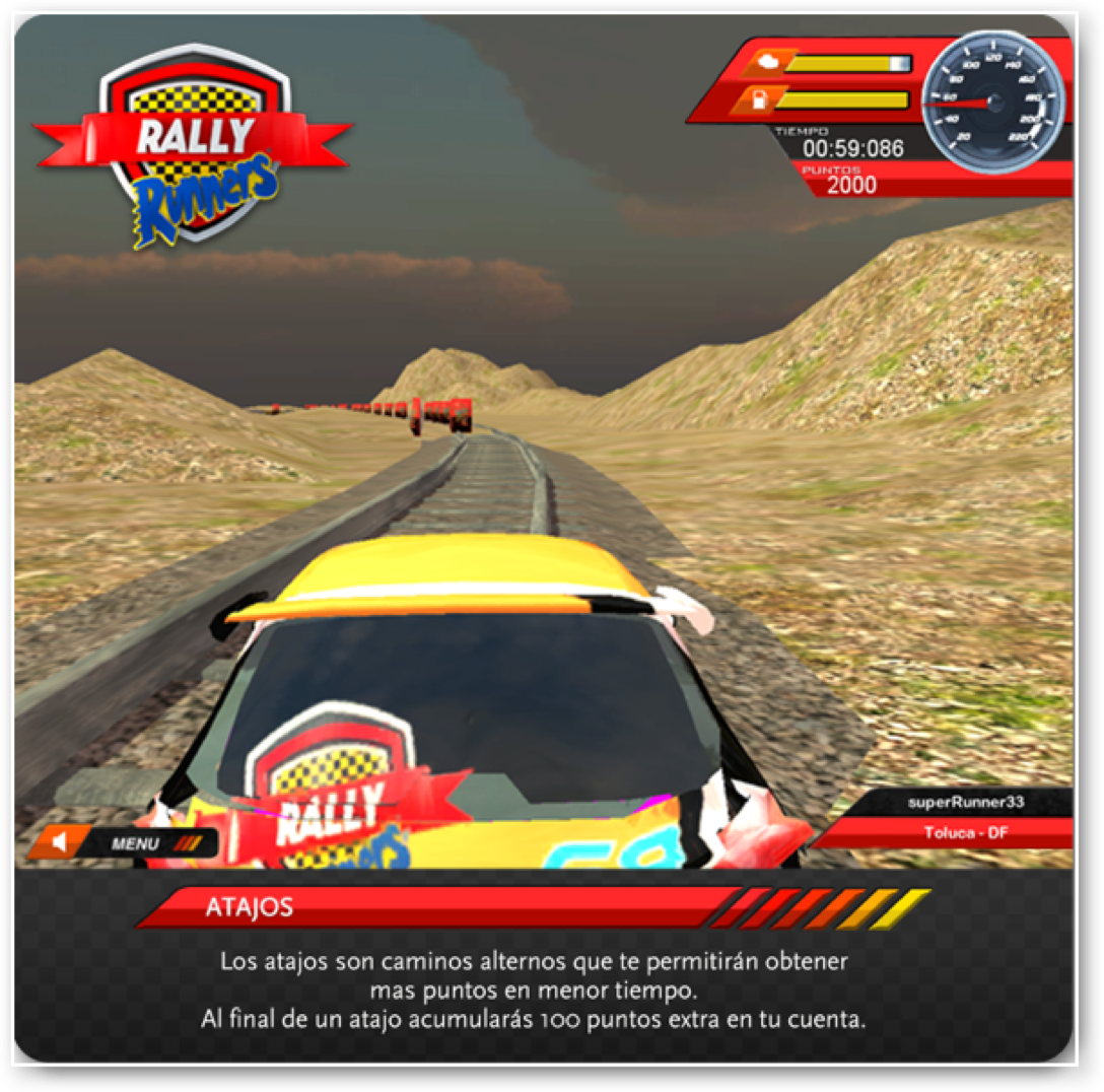 Videojuego en linea que realizamos para una promoción, desarrollando códigos alfanuméricos de seguridad impresos en el producto, plataforma digital para registro de usuarios, bases de datos, back end, arquitectura, diseño gráfico, modelos 3D, pistas, diseño de la mecánica del juego, sistemas de monitoreo, estadísticas, integración con redes sociales, etc.