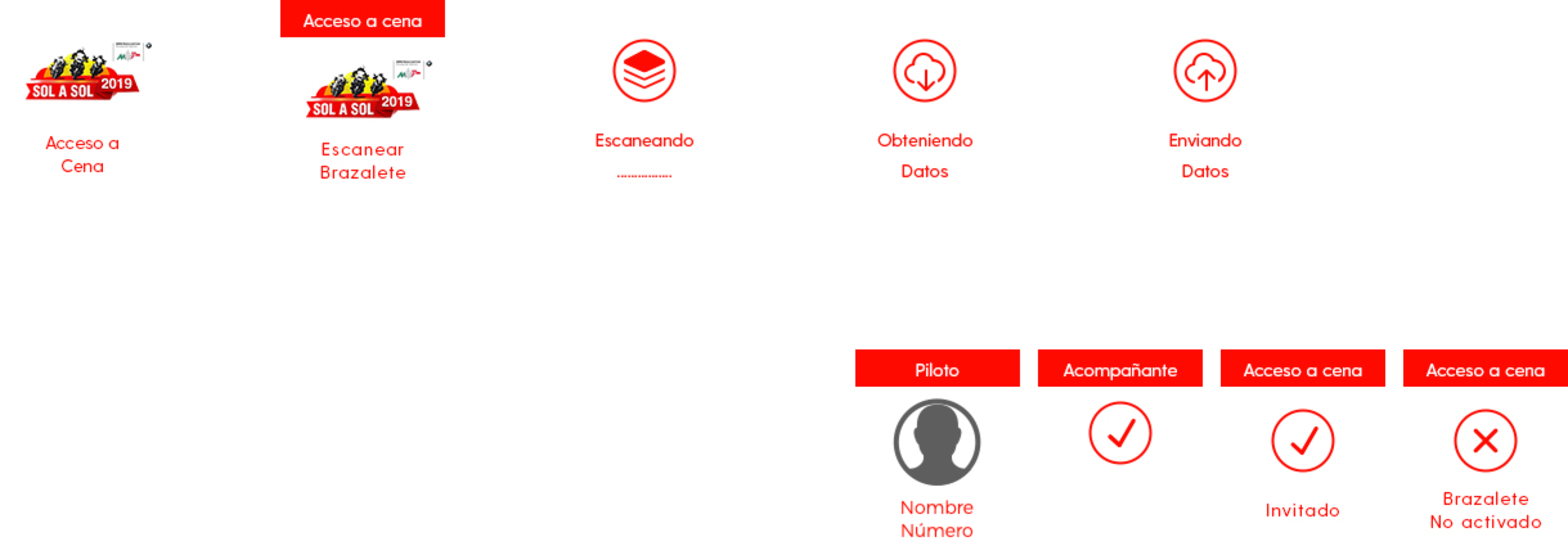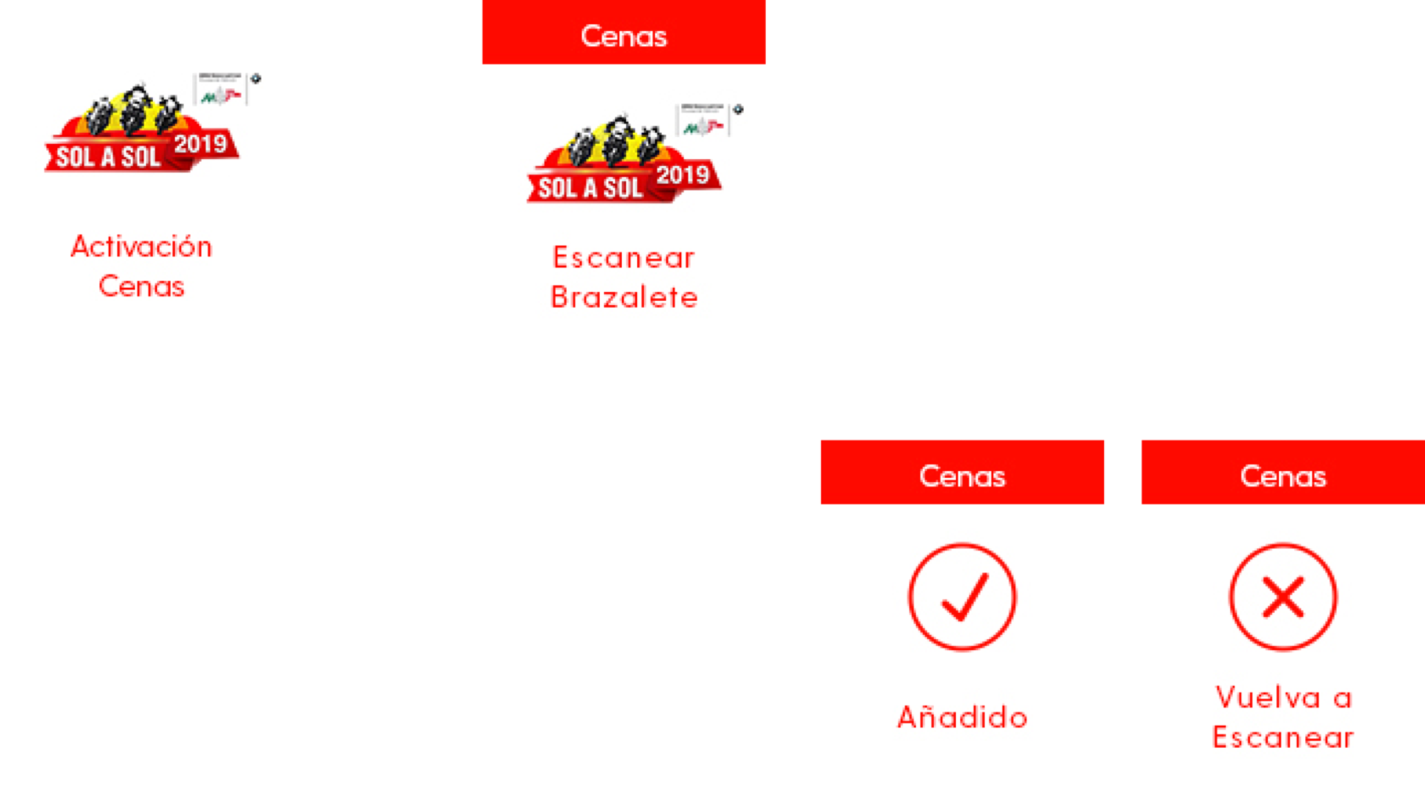 4. Activación de Cena, alimentos y bebidas. El scanner con esta funcionalidad podrá activar brazaletes de invitados que no participan en el rallie pero sí asisten a la cena de clausura.