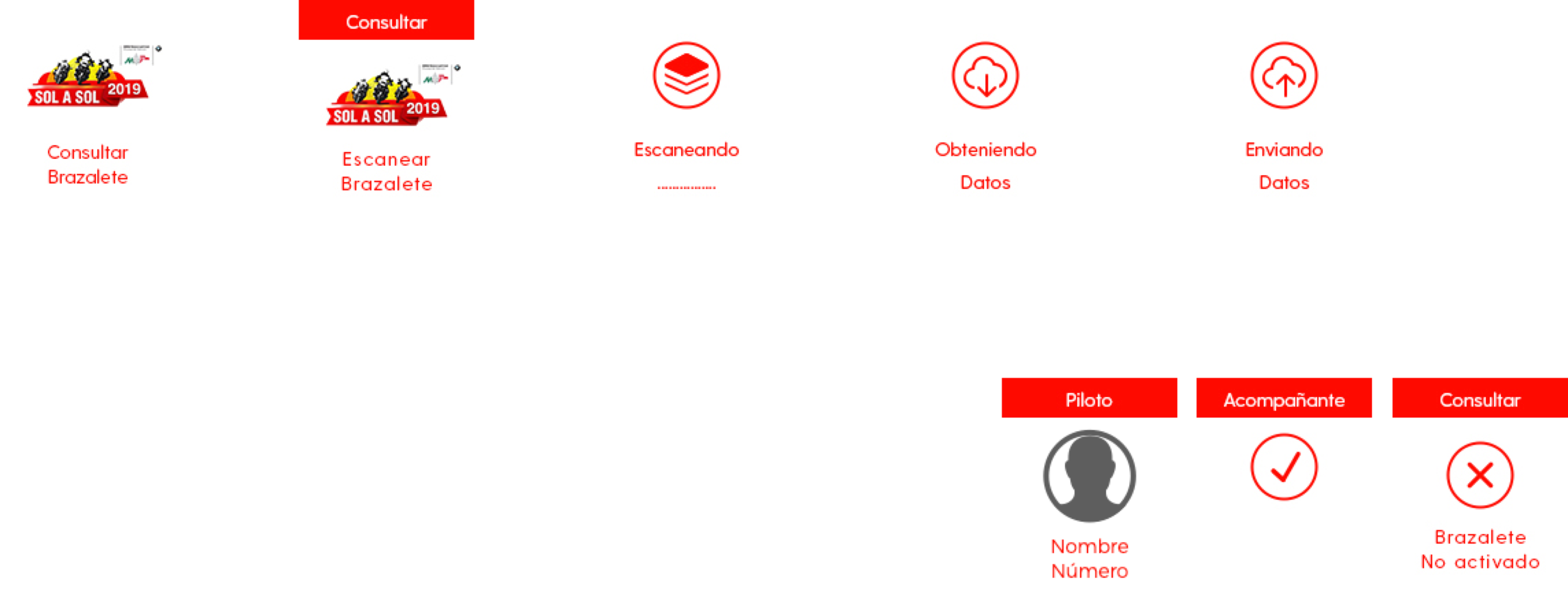 A los demás se les asigna una tarea especifica y de acuerdo a esta el scanner solo requiere identificar la presencia de un brazalete para ejecutar el registro de el participante y comunicarlo a la base de datos.